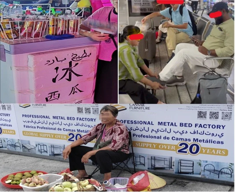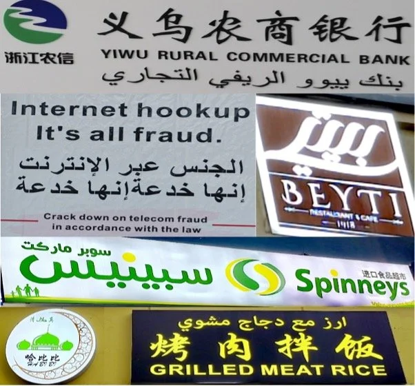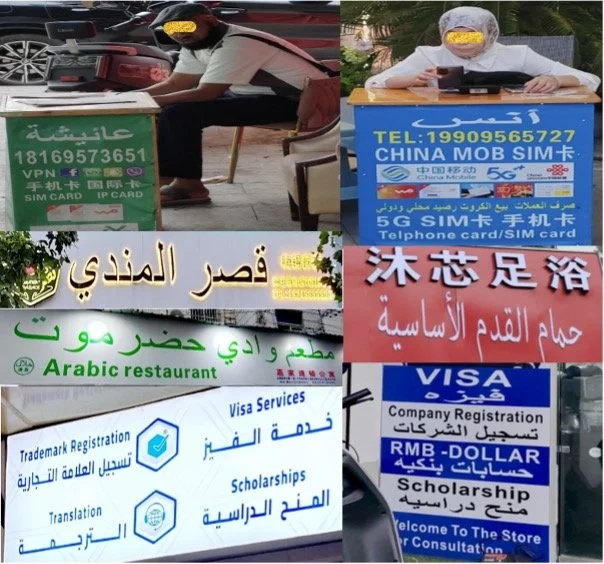 Figure 1: signs featuring Arabic found in and around Chouzhou North Road.